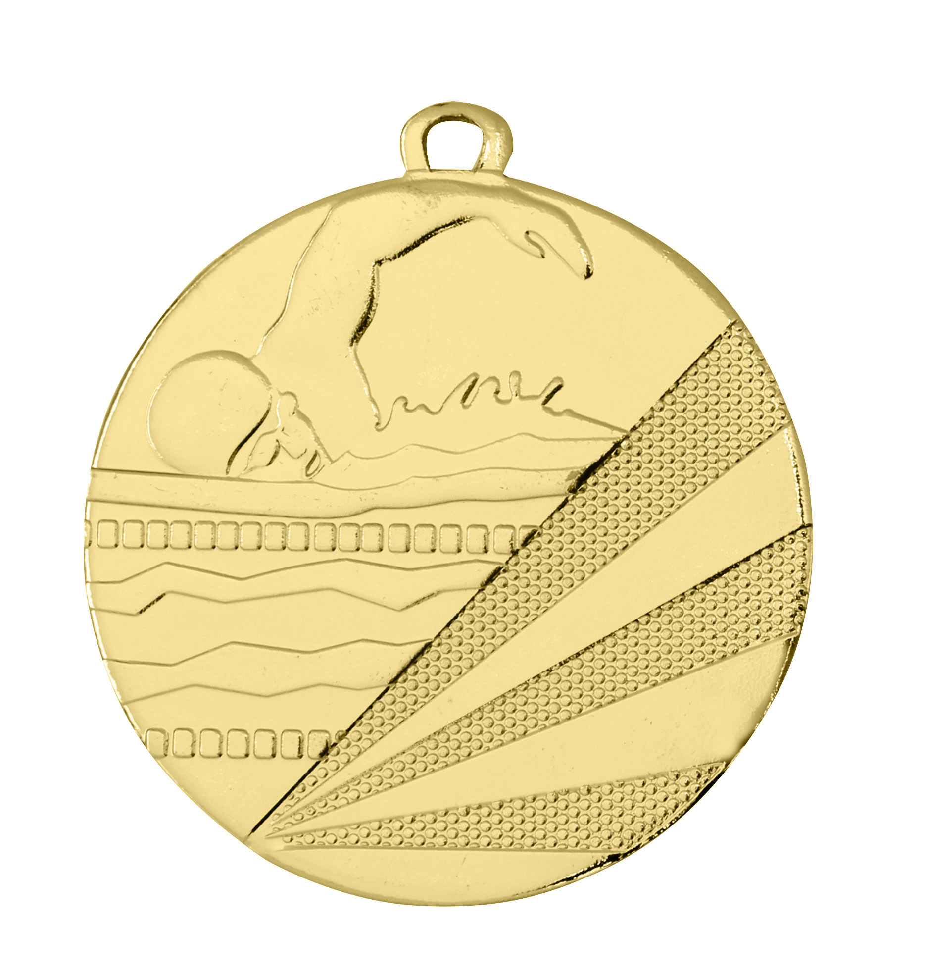 50mm Ø Medaille für die Sportart Schwimmen. Diese Medaille ist in folgenden Farben erhältlich : Gold , Silber und Bronze. Im Preis mit inbegriffen : 10mm Band/Aufkleber mit Ihrem Text plus Vereinslogo und die Montage.