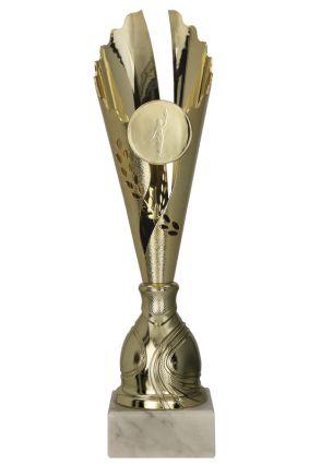 6er Pokal Serie in der Farbe Gold von 33cm , 34cm , 35cm , 37cm , 38,5cm bis 39,5cm. Der Kelch , Mittelstück und der Fuß ist aus Kunststoff auf einem Marmorsockel.