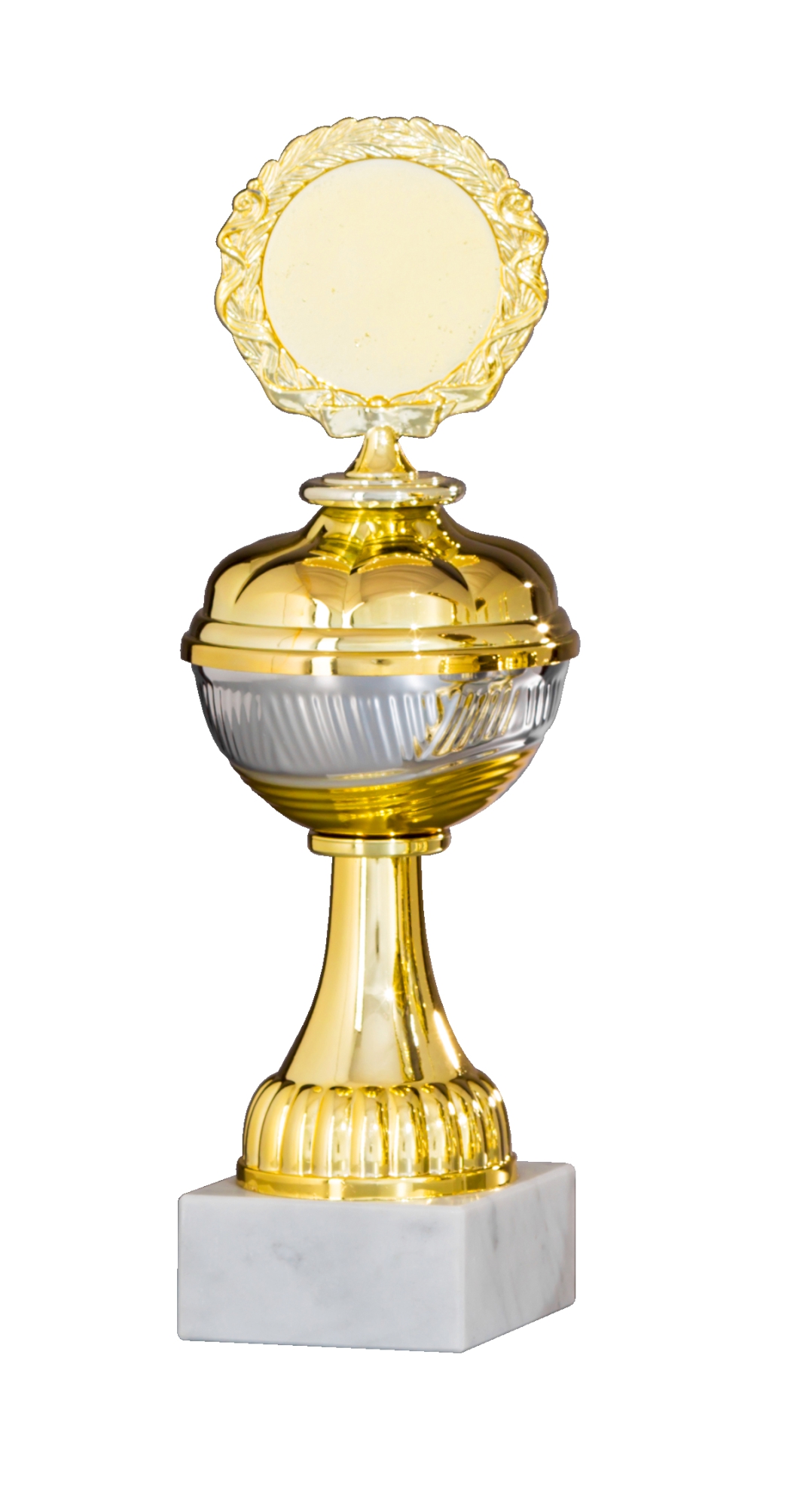 Pokal Serie in Gold/Silber inkl. Aluschild/Schrift/5cm Ø Logo/Montage